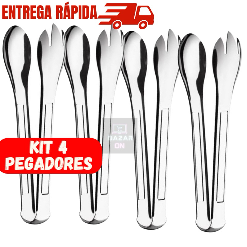 Kit 4 Pegadores Pinça Para Salada em Aço Inox Multiuso Massas Macarrão Original
