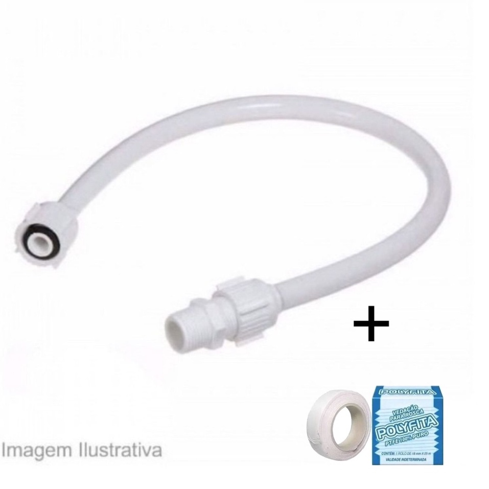 Engate Rabicho ( C/Fita Veda Rosca ) Rosca Mangueira Flexível Plástica Branca Para Água Fria Banheiro E Cozinha