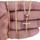 Corrente Cordão Masculino Fino Grumet 2mm Pingente Cruz Banhado Folheado A Ouro 18k 60Cm - jade