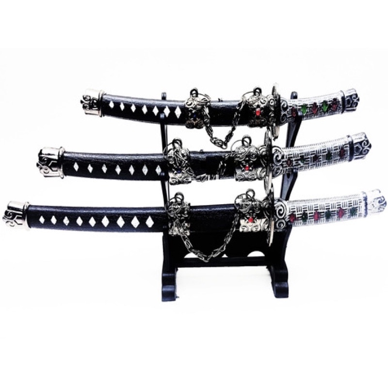 Kit 3 Mini Katana abridor de cartas Enfeite Com Suporte Samurai