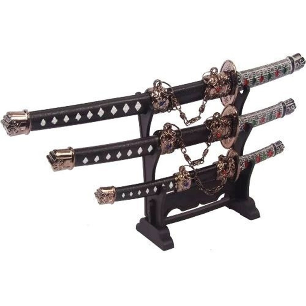 Kit 3 Espadas Mini Katanas Samurai Japonesa Metal Decorativas Abridor de carta SEM CORTE