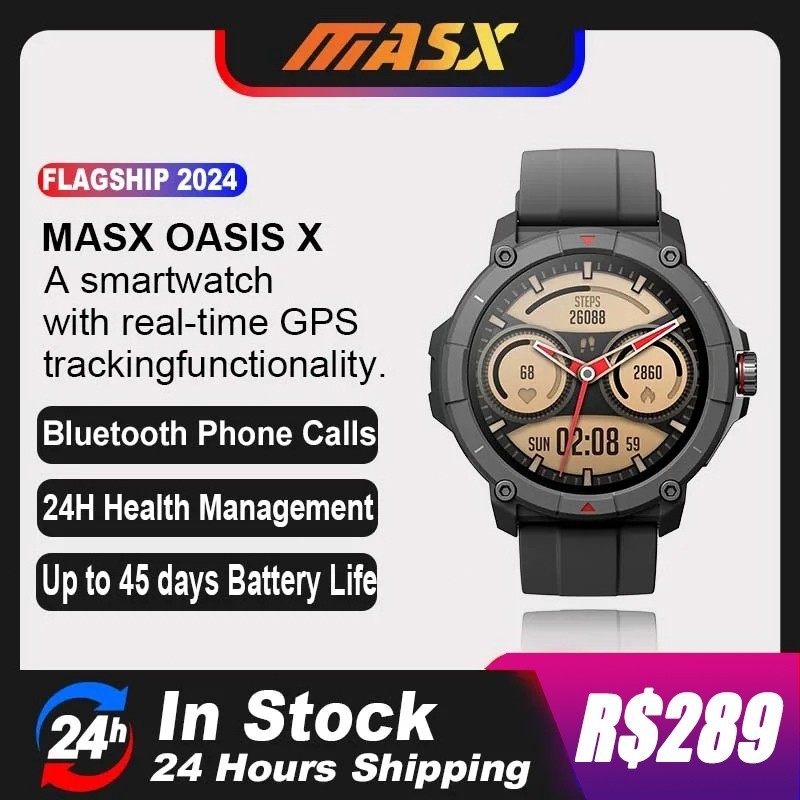 MASX Oasis X Gps Smartwatch Relogies Masculino Feminino Relógio Alexa Integrado Com Premium Ultra Hd Hi-Fi Bluetooth Cha