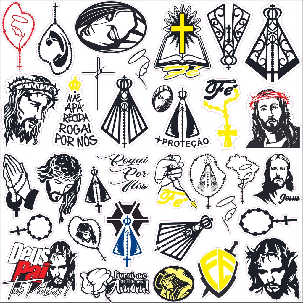 34 adesivos Santinho, aparecida católico, igreja carro moto