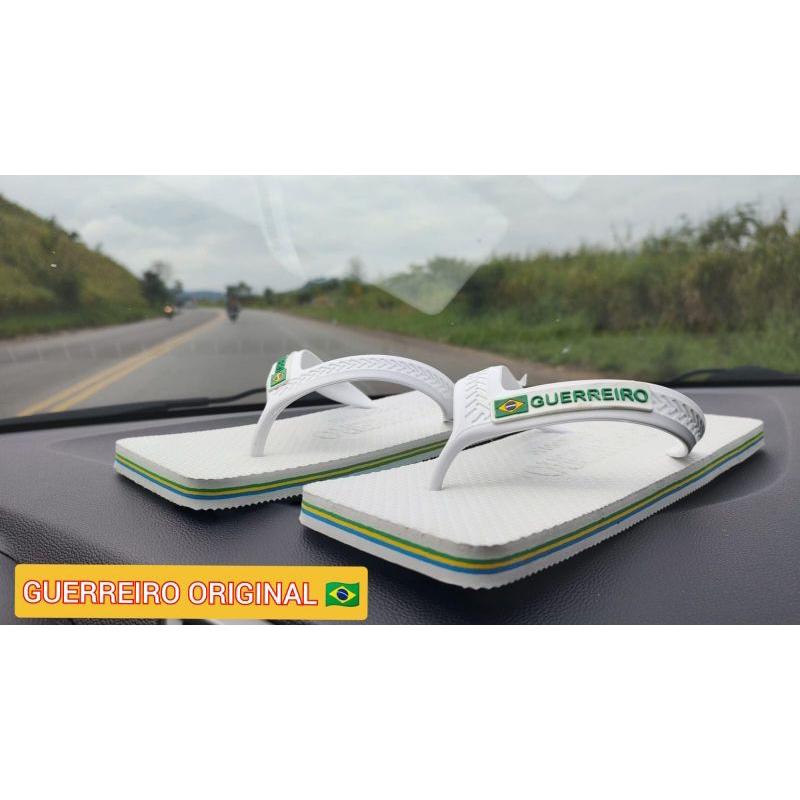 chinelo quadrado branco preto e azul japonês guerreiro original bandeira do Brasil sola borracha