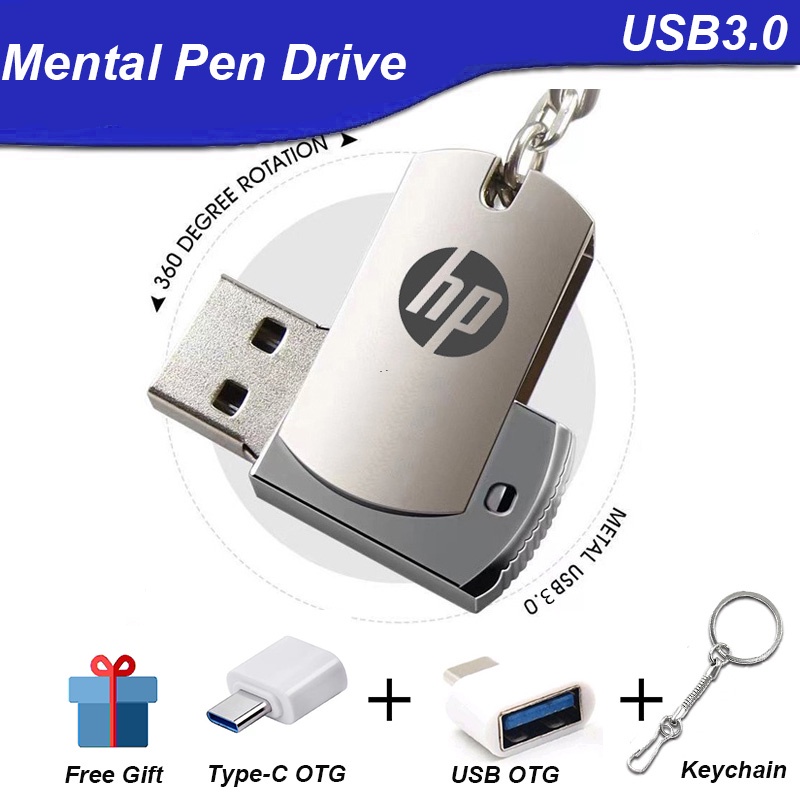 Pen Drive HP De Alta Velocidade De Rotação USB Flash Tb 2 1TB 128GB 256GB 512GB PenDrive Mental USB3.0 Saltor De Armazenamento De Dados Com Keychain