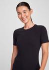 Blusa Básica Feminina Manga Curta Gola Alta Em Ribana