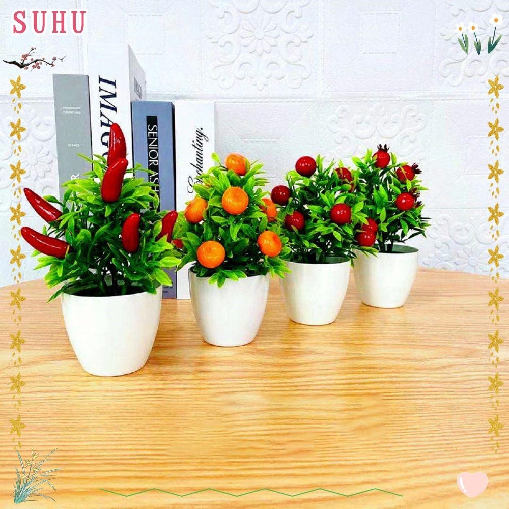 SUHU Plantas Artificiais Bonsai Fotografias Adereços Para Casa Decoração Falsas Romãs Verdes Pimenta De Romã