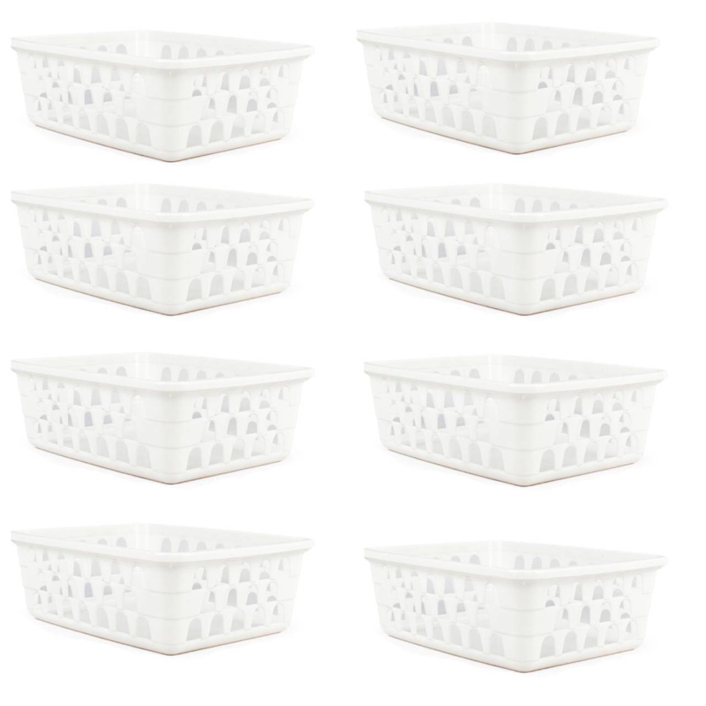 Kit 8 Cestos Multiuso Organizador Médio 20x15,5x6,5Cm Branco