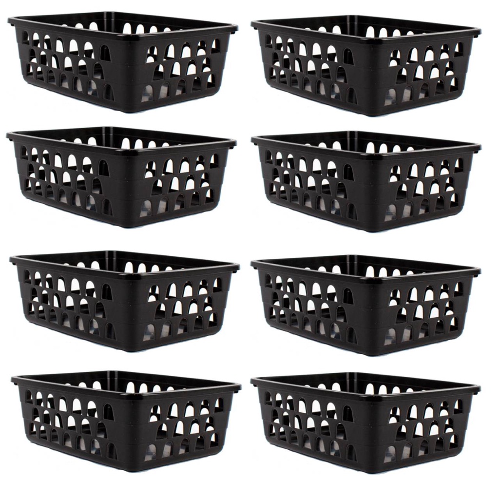 Kit 8 Cestos Multiuso Organizador Médio Preto 20x15,5x6,5Cm