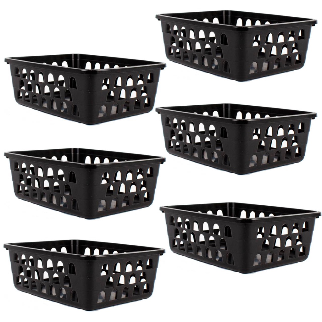 Kit 6 Cestos Multiuso Organizador Médio Preto 20x15,5x6,5Cm