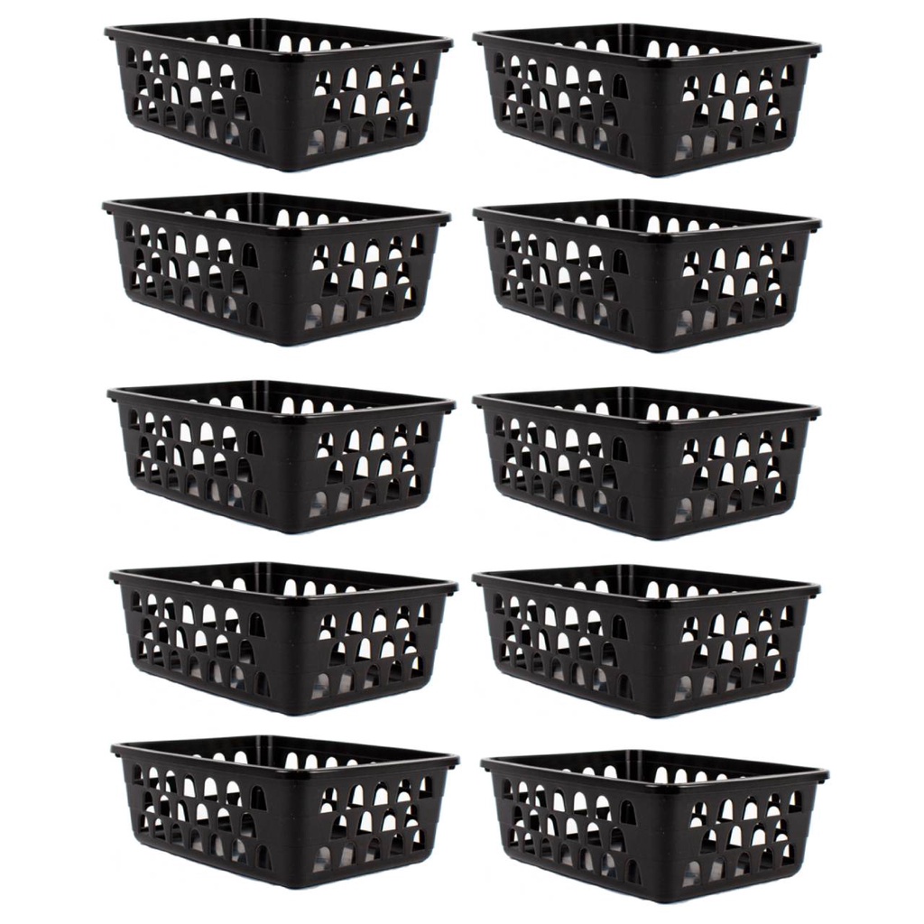 Kit 10 Cestos Multiuso Organizador Médio Preto 20x15,5x6,5Cm