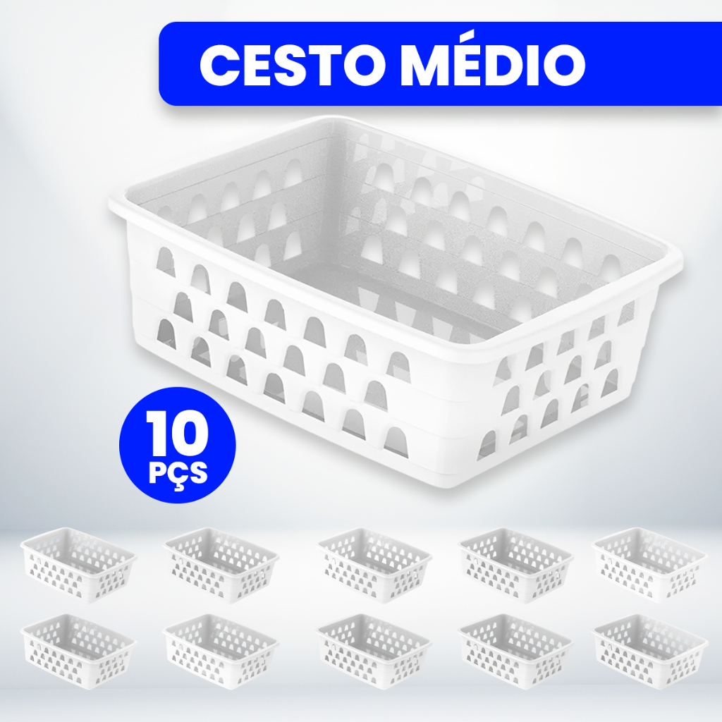 Kit com 10 Cestos Organizadores Multiuso 20x15,5x6,5 Médio Branco