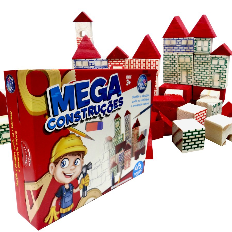 Jogo Educativo Blocos de Madeira - Mega Construções Madeira 45 Pçs Montar- Pais & Filhos