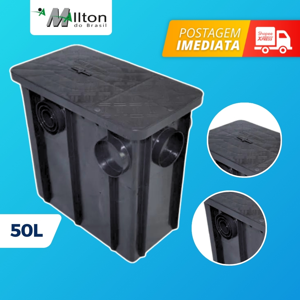 Caixa De Gordura Sifonada Grande 50L Mallton Coletora Com Cesto Suporta 2 Cozinhas
