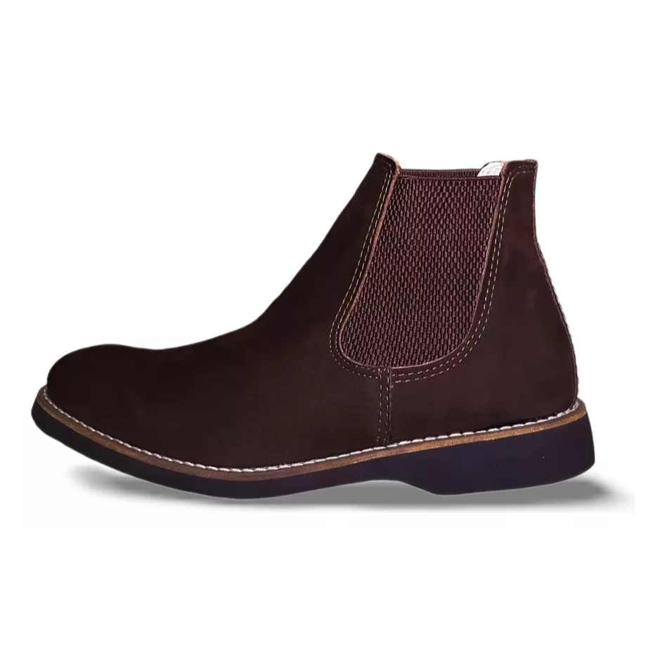 Bota Chelsea Masculina Botina Com Elástico em Couro Marrom