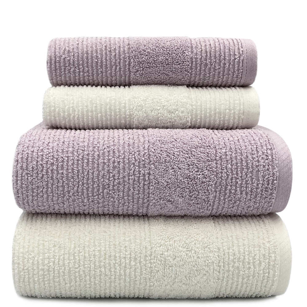Jogo de Toalhas Gigante / Banhão 4 Peças Maria Tereza - Lilás/Branca - (02 Banho + 02 Rosto) - LMpeter