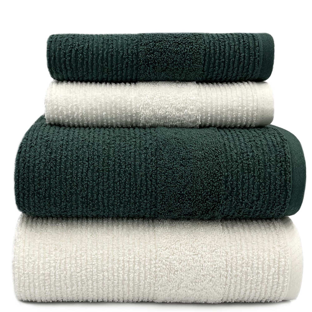Jogo de Toalhas Gigante / Banhão 4 Peças Maria Tereza - Verde/Branca - (02 Banho + 02 Rosto) - LMpeter