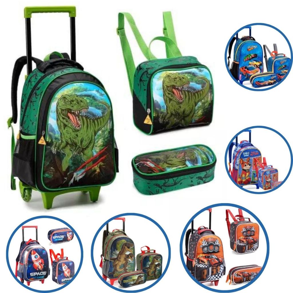 Kit Mochila Infantil Menino Escolar Masculino Reforçada Rodinhas Grande