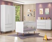 Kit Quarto Bebê Retrô Melinda Branco Roupeiro + Cômoda + Berço Mini Cama Ana - Mobili