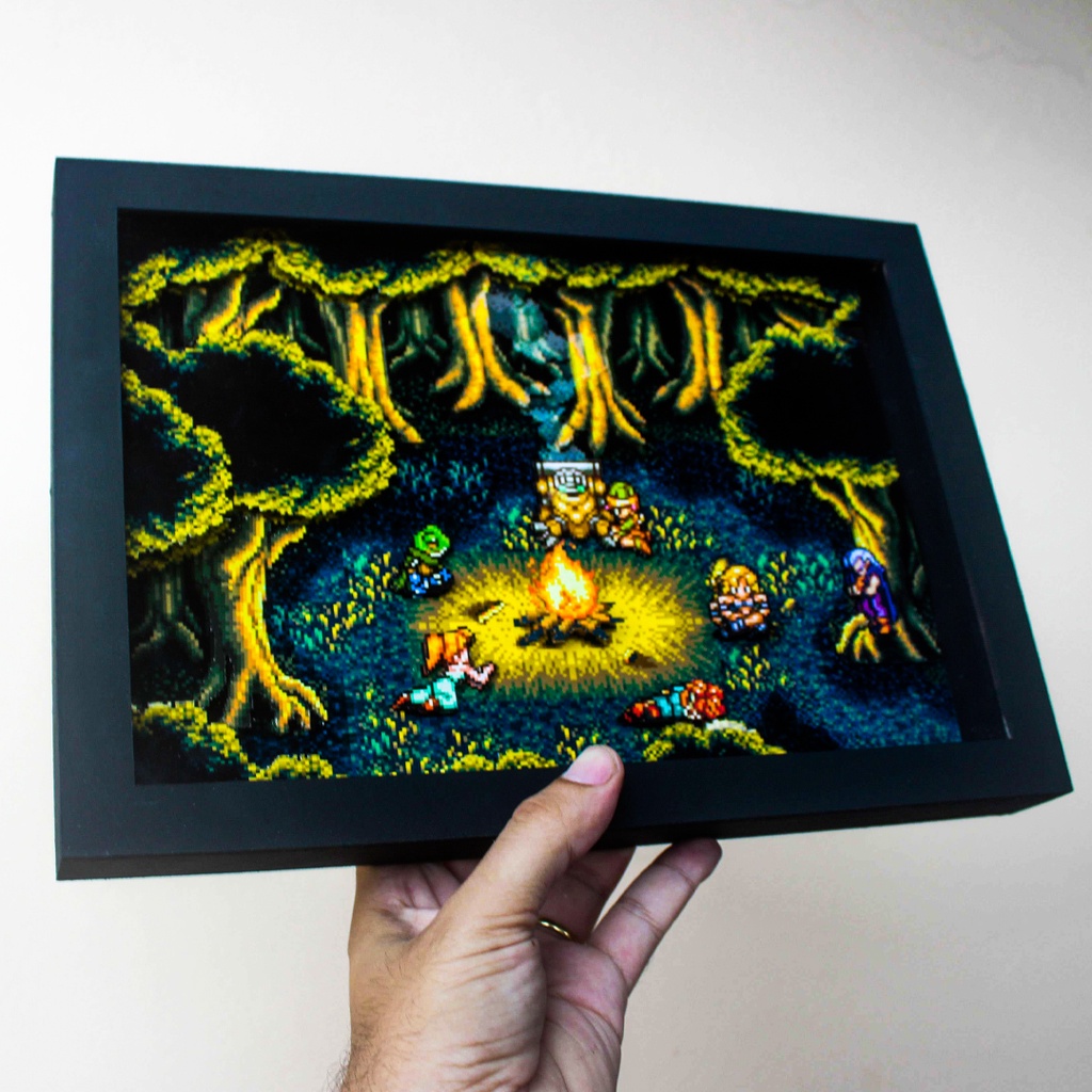 Quadro Diorama Alto relevo Chrono Trigger Fiona's Forest Pixel Art