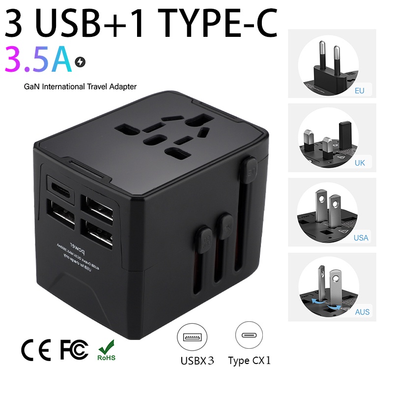 LENCENT Adaptador Universal De Viagem , Carregador Internacional Com 3 Portas USB E De Carregamento PD Tipo C Para Celulares , Plug Tudo Em Um Mais De 200 Países