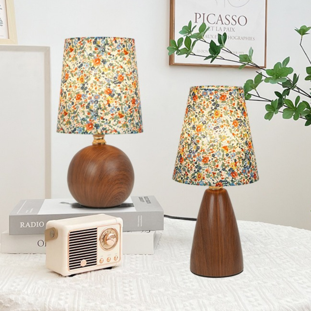 Abajur Luminária De Mesa Nogueira Floral Estilo Madeira Cabeceira Quarto Sala Estudo Leitura