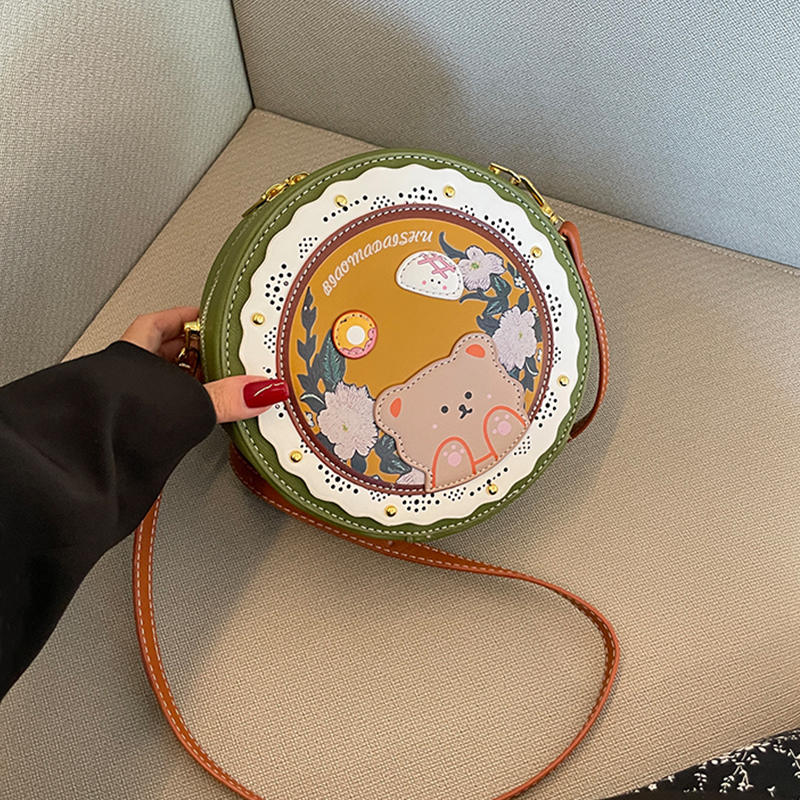 Textura de alta qualidade Saco de Bolo Redondo Fofo Saco de Bolo Redondo Feminino Presente de Aniversário Moda Tudo em Um Ombro