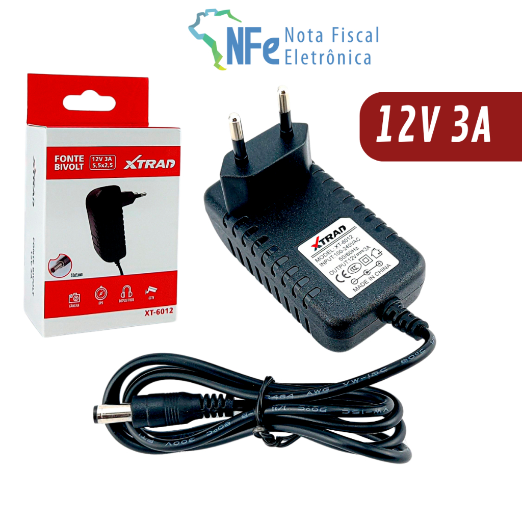 Fonte De Alimentaçao 3a 12v Bivolt Para Fitas Led E Cameras Com Alta Autonomia E Performance