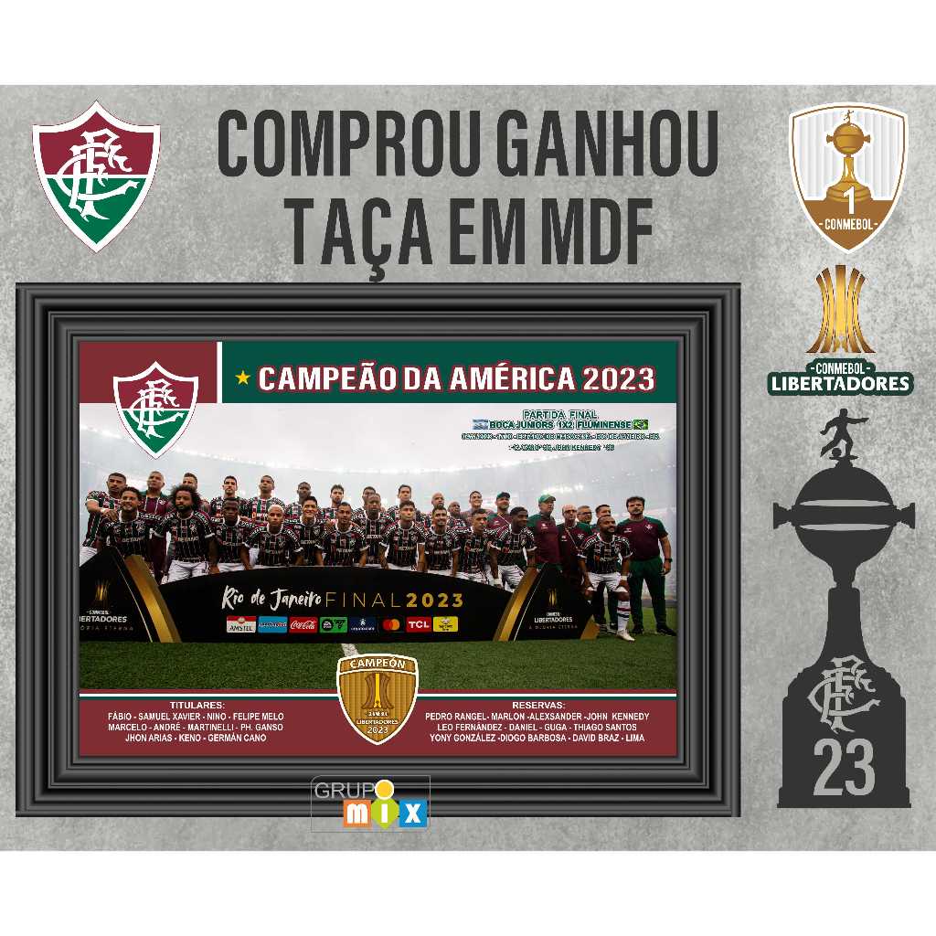 Placa decorativa Quadro Fluminense Campeão Taça Libertadores Futebol escalação 2023