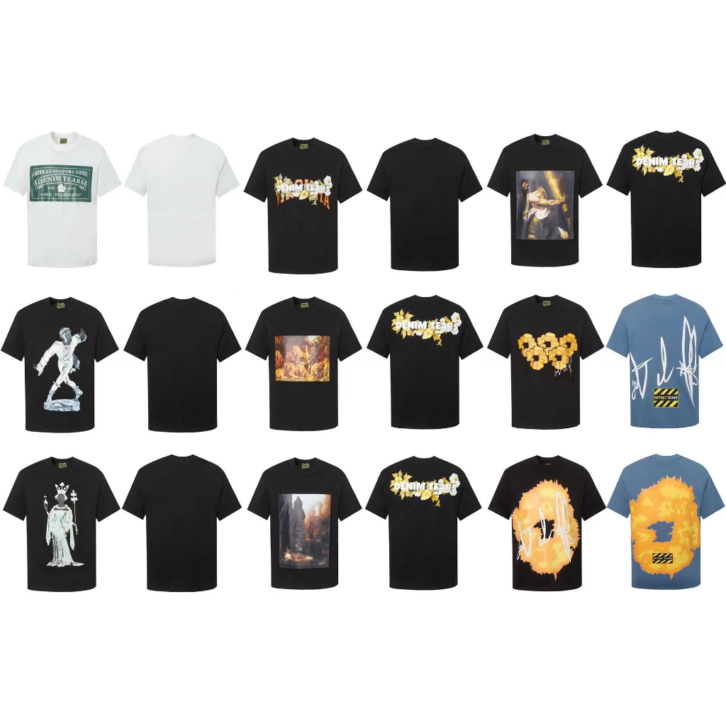 2023SS Novas Equipes Offset DENIM TEARS Trendy Algodão Vintage Pintura A Óleo Impressão Casal De Rua Alta Solto Casual Camiseta De Manga Curta Tendência