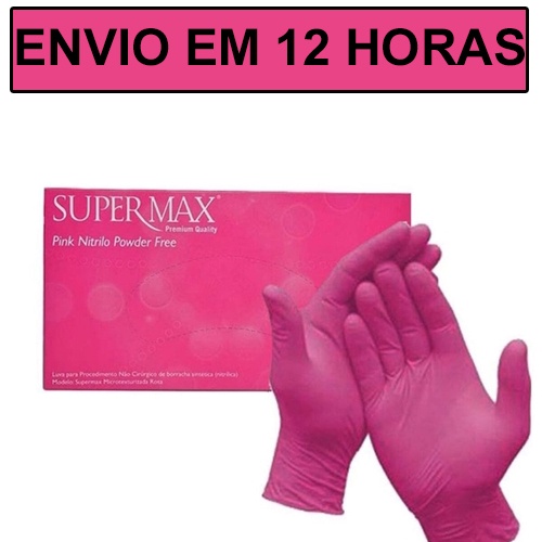 Kit 10 Luva Nitrílica Rosa Pink Sem Pó 1000 Unidades Supermax