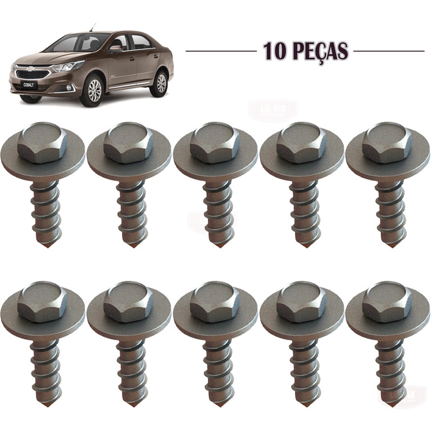 10 Parafusos c/ Porca Aço Lanterna Paralama GM Cobalt