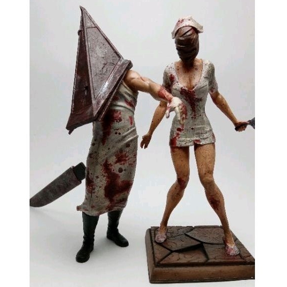 Estatuas Pyramid Head e Enfermeira Silent Hill em 3d