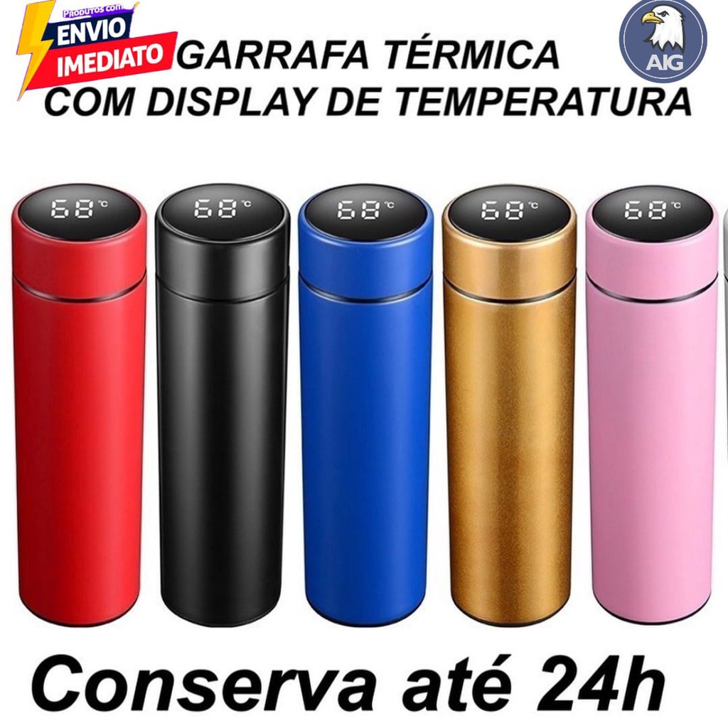 Garrafa Inteligente Térmica 500ml Display Digital Led Medidor Temperatura Aço Inoxidável