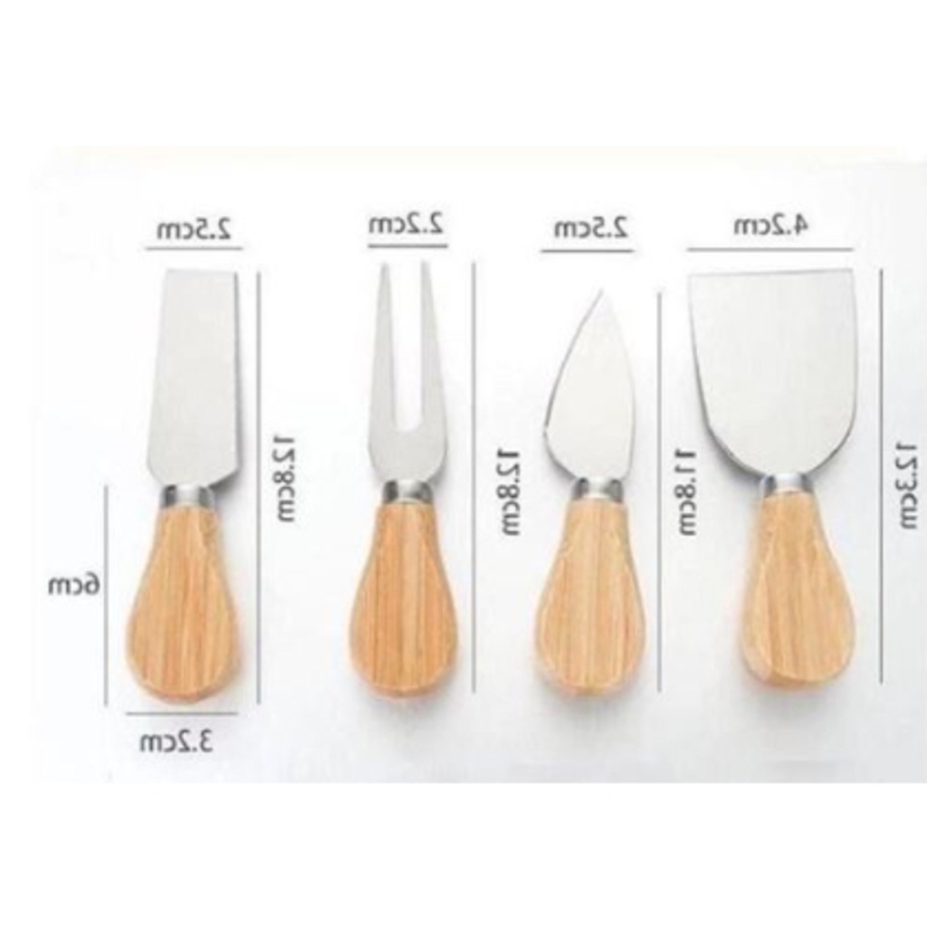 Jogo 4 Peças Kit para Queijo Inox Unyhome / Faca / Garfo / Espátulas / Inox e Madeira (MDF) / Ótima Qualidade e Acabamento