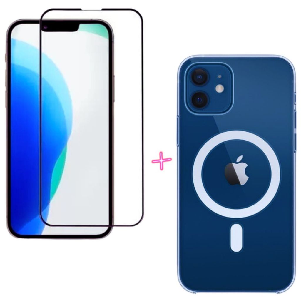 Kit Capa MagSafe Transparente + Película 3D Privacidade P/ iPhone 12