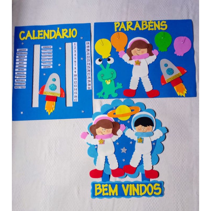 Painel em E.V.A Kit de Decoração para Sala de aula c/3 Cartazes.