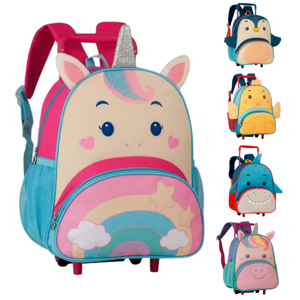 Mochila de Rodinhas Infantil Animais do jardim Linha Clio Pets Lançamento ENVIO IMEDIATO Clio Style