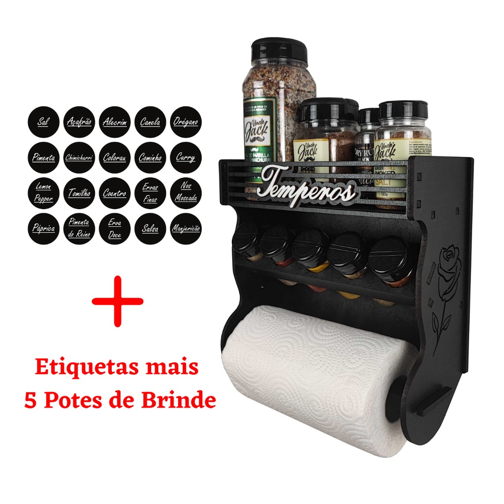 Porta Temperos com Local Para Colocar Potes + Kit 10 Potes de Tempero.