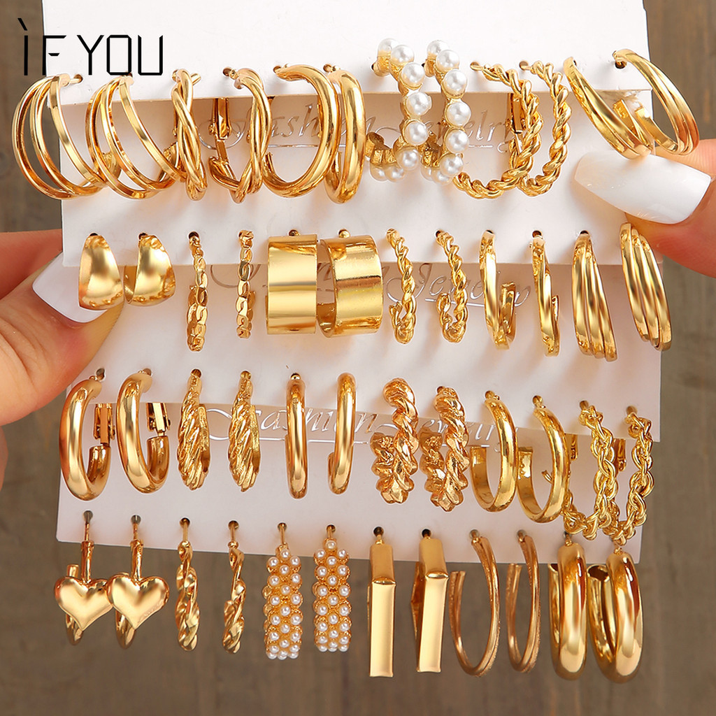17 Pares/Set 18K Conjunto De Brincos Com Argolas De Ouro Para Woman Butterfly Pendant Acessórios Hipoalergênicos Jóias