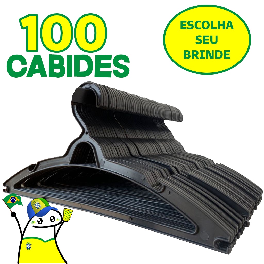 100 Cabides Plástico Preto Tradicional adulto