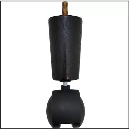 Pes De Cama Box Bau Preto Com 12 Cm - 02 Unidades Com Rodas Em Madeira Padrão Universal
