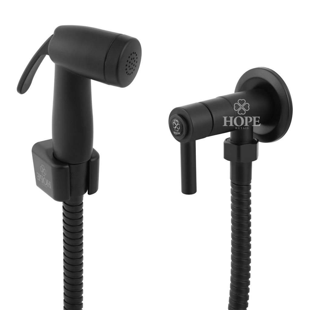 Ducha Higiênica Intima Chuveirinho Banheiro Quadrada Luxo Metal 1/4 de volta Preto Fosco Hope Metais