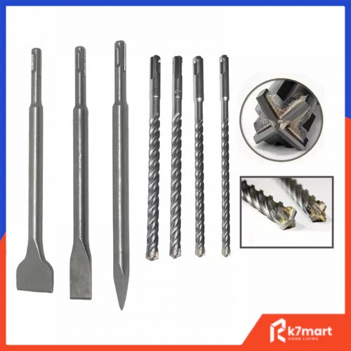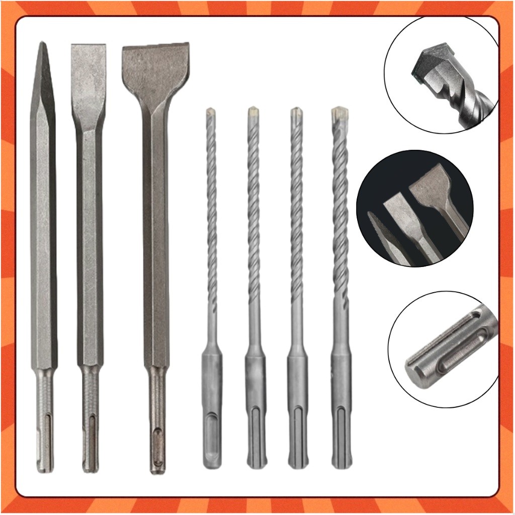 Kit 7 Sds Plus Para Martelete Ponteiro Talhadeira e Brocas