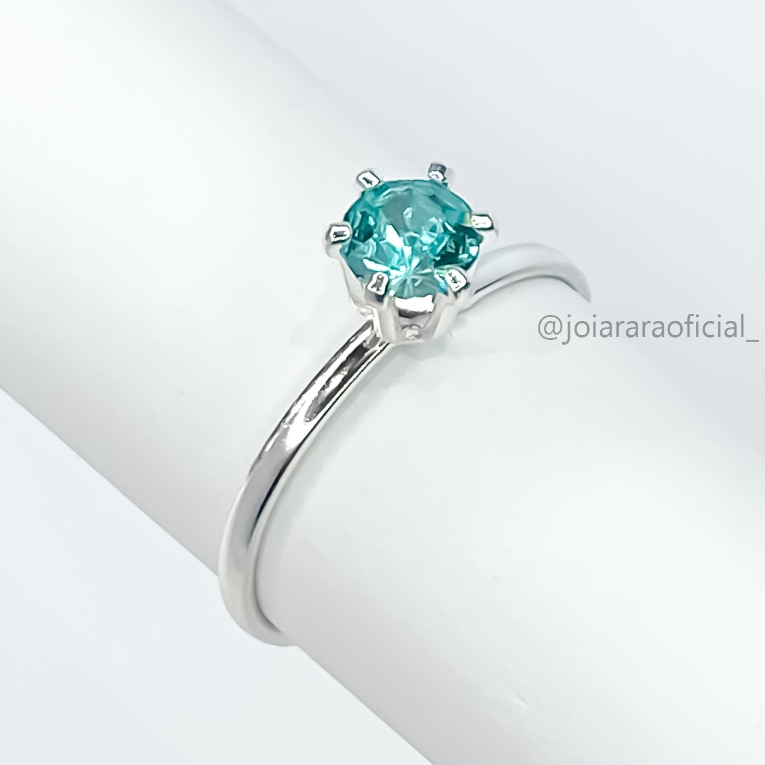 Anel Solitário com Pedra Azul Safira Feminino Folheado a Prata