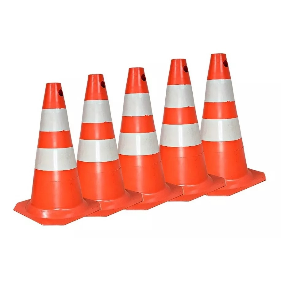 Kit 5 Cones Sinalização Segurança Trânsito Pvc 50cm