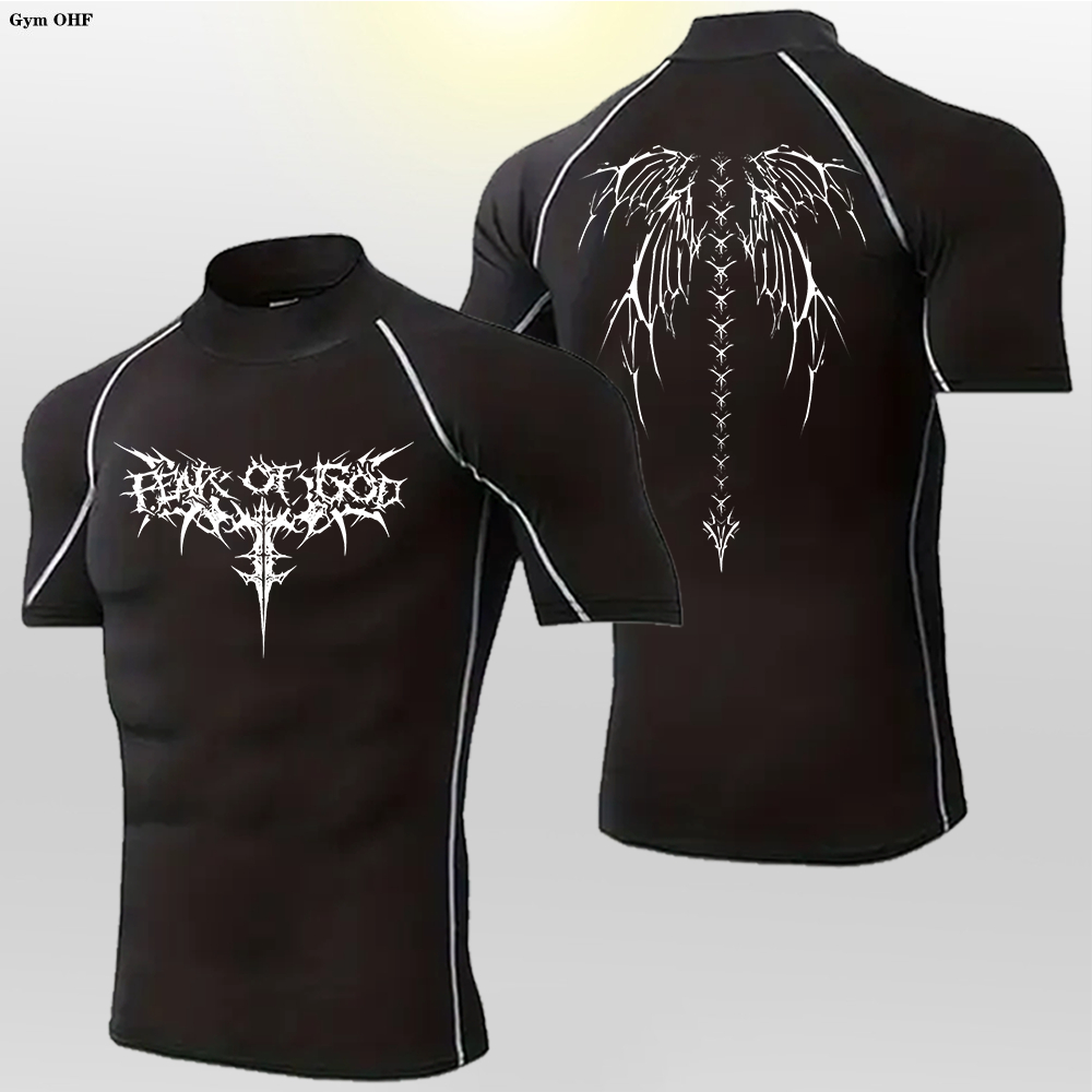 Camiseta Esportiva De Compressão Masculina Fitness Respirável Gola Alta Corrida Manga Curta