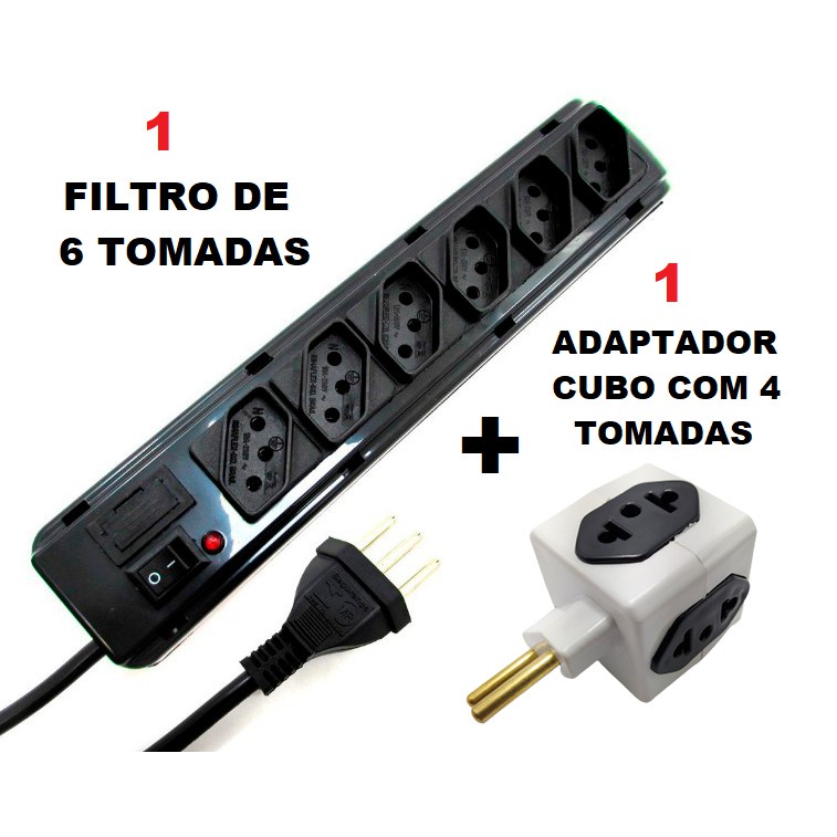 Filtro de Linha de 6 Tomadas Régua Elétrica + adaptador em cubo Ótima Qualidade Proteção P/ Tv Som Computador Admirável