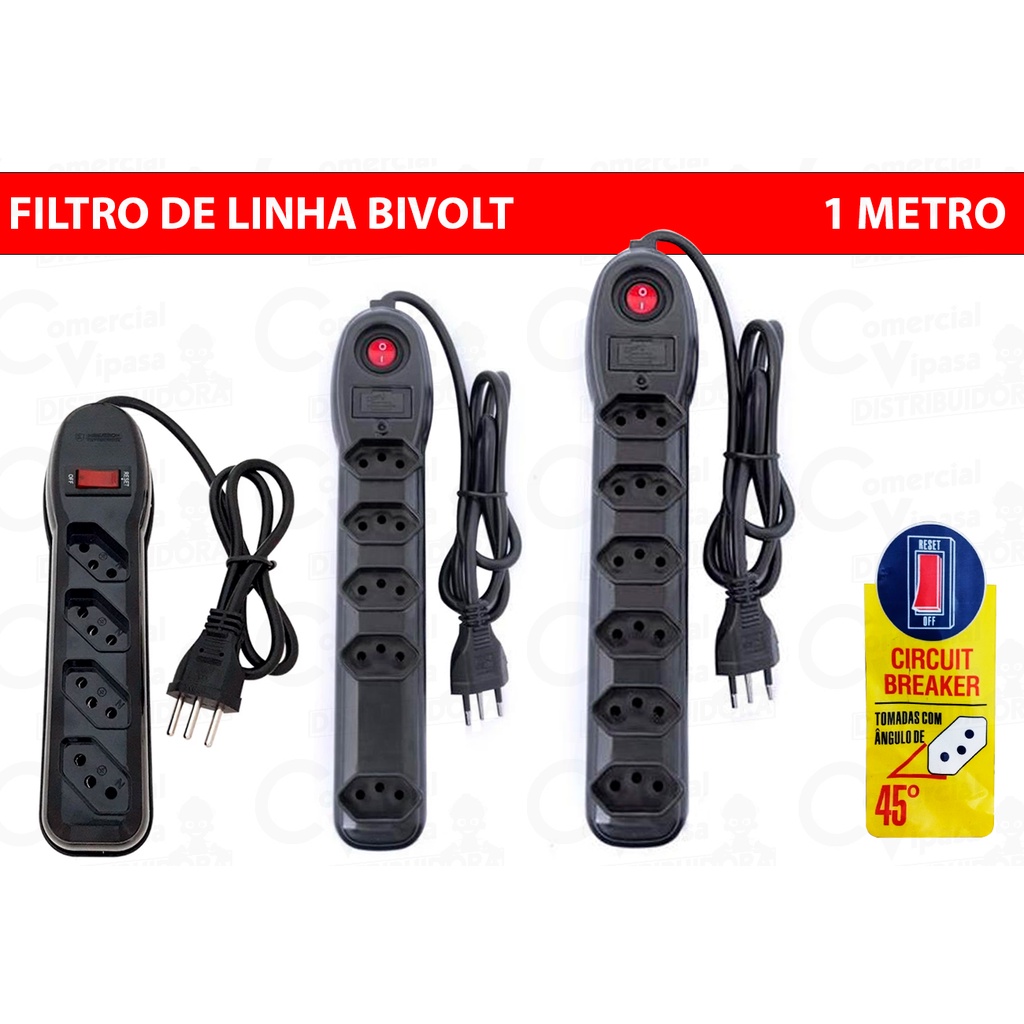 Filtro de Linha de Tomadas Régua Elétrica Ótima Qualidade Proteção P/ Tv Som Computador promocao JORGR