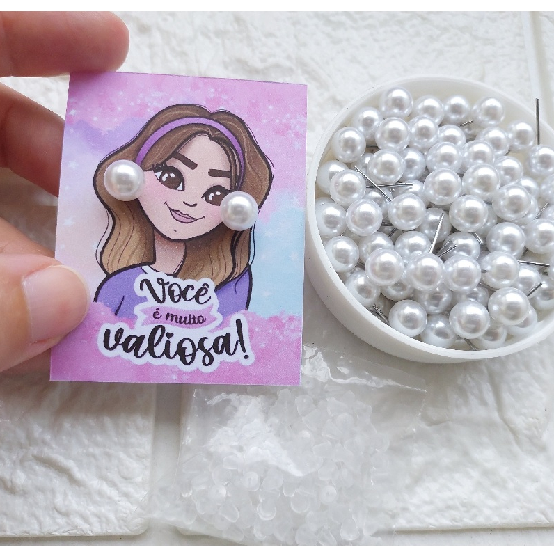 50 Pares de Brincos de pérola com Tag Dia Da Mulher - Mimo Lembrancinha para cliente